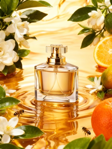 奢华感与优雅感交织,3D风玻璃展盒搭配金属质感瓶身,鎏金细沙与柔光丝缎烘托现代清透氛围,光影流动间尽显时尚格调。