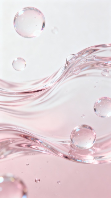 清澈透明的水面,阳光照射下泛起层层涟漪,水波纹理细腻清晰,呈现出梦幻般的粉紫色调,光影交错间营造出宁静而浪漫的氛围,水面质感光滑且富有流动性,涟漪的同心圆扩散自然,高光与阴影过渡柔和,整体画面清新唯美,色彩变换为粉紫渐变效果。