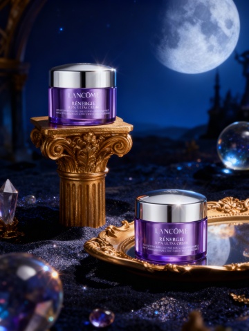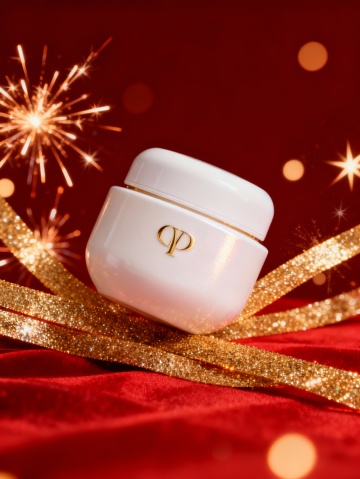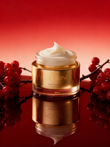 鎏金质感瓶身搭配3D立体光影,重拟物风呈现奢华优雅,红果点缀映衬节日氛围,金属光泽与柔润乳霜交织,尽显时尚高级感。