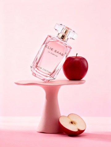 柔粉色调中,Coach香水瓶以玻璃风与浮雕工艺呈现优雅时尚,搭配雏菊与烛光,营造出甜美、温馨的实景氛围。