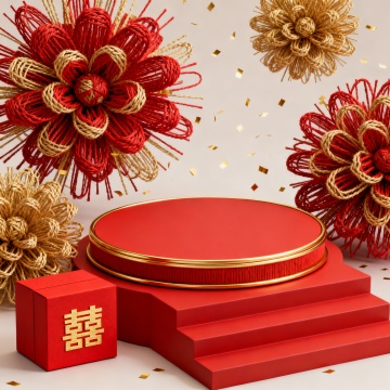 一幅以中国传统剪纸风格呈现的红色背景设计,整体采用正红色作为主色调,搭配金色作为点缀,营造出喜庆而庄重的氛围。画面上方以精细的剪纸工艺呈现出流畅飘逸的金色曲线,线条边缘带有细腻的镂空纹理,如同被精心裁剪的金箔丝带在红色背景上优雅舞动。光影效果方面,金色曲线从左上角向右下角延伸,左侧受强光照射呈现出明亮的高光,右侧逐渐过渡为柔和的阴影,形成明显的明暗对比,增强了画面的立体感和空间层次。红色背景并非单一色块,而是通过细微的渐变处理,从中心向四周呈现出由深到浅的色彩变化,中心区域颜色浓郁深沉,边缘则稍显明亮,仿佛光线从四周柔和地渗入。整个设计简洁大方,剪纸的镂空质感与光影的巧妙结合,既保留了传统元素的韵味,又展现出时尚现代的视觉美感,适合作为节日庆典或重要活动的背景使用。