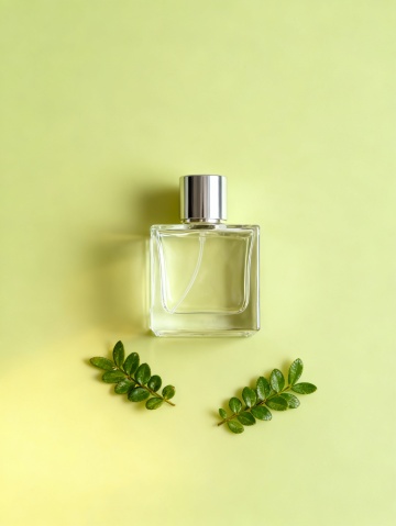 清新绿意映衬透明玻璃瓶,简约现代设计融合轻拟物元素,柔和光影传递清爽舒适感,演绎自然与科技的纯净之美。