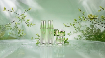 美妆产品宣传海报,整体采用清新通透的蓝白渐变色调,柔和的顶部光源营造出水润光泽感,3D立体展示的白色软管状护肤品置于圆形白色平台上,周围点缀白色花朵和绿色叶片,画面上方有产品核心功效的蓝色圆形图标与文字说明,中部包含分点介绍的肌肤问题示意图与解决方案,下方通过水滴、透明气泡等元素展现产品水润质地,搭配清晰易读的无衬线字体,整体排版层次分明,信息传达高效,符合护肤品针对敏感肌、追求温和清洁与保湿人群的宣传目的,保持相同设计风格与视觉元素,替换展示不同护肤品。