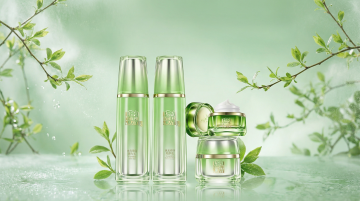 一组六个不同美妆产品的广告海报集合,保持高清3D渲染风格,透明渐变蓝色包装,光滑塑料质感,金属银色瓶盖,白色纯色背景,柔和高光和阴影效果,每个产品独立展示,规整的网格排布,包含洗面奶、爽肤水、乳液、面霜、精华液和面膜,每个产品都有品牌标识和产品名称,现代简约设计,清晰的产品轮廓,水润光泽感,专业美妆产品摄影风格,高品质商业广告设计,统一的视觉语言和色彩系统,突出产品的质感和高端定位。