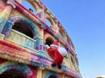 毛发生长风包裹凯旋门,重拟物与超现实主义碰撞,实景感中透出趣味冲击,体积感十足的绒毛巨构颠覆经典。