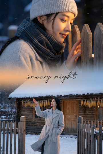 雪落古村,光影流转间尽显质朴与温暖。双色设计风融合胶片质感,营造静谧唯美氛围,毛发生长般的细腻纹理增添故事感,如杂志风大片般文艺清新。