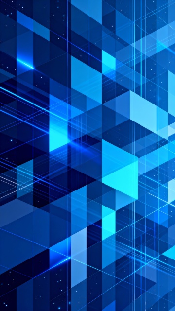 深蓝色渐变背景,由不同透明度和亮度的蓝色几何方块、矩形和线条构成的抽象科技感图案,方块和线条呈现出不规则的堆叠和交错排列,部分区域有轻微的发光效果和光晕,整体色调统一为深浅不一的蓝色系,营造出神秘、深邃且富有未来感的氛围,具有数字艺术的平滑过渡质感和清晰的线条边缘,画面中没有文字、LOGO、二维码及具体标识信息。