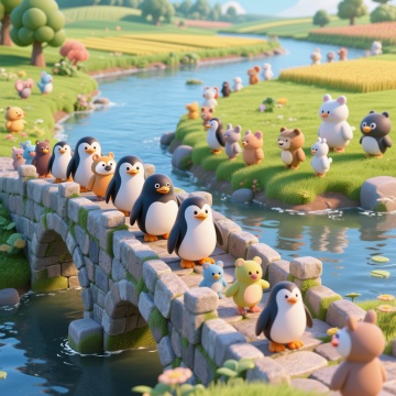 梦幻甜美元素融合软3D风格,毛发生长风树木与粉嫩云朵营造童话森林,虚拟自然中流淌着清澈溪流,传递春日治愈感。