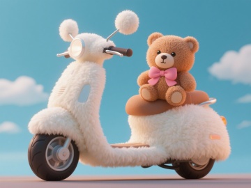 柔软毛绒泰迪熊坐于梦幻云朵花丛间,3D渲染呈现温暖治愈的虚拟自然场景,融合毛发生长与面料质感,营造甜蜜可爱、柔和舒适的童话氛围。