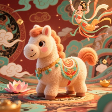 梦幻感与可爱感交织的3D软毛绒世界,传统宫殿在雪中萌化,毛发生长风营造虚拟自然,节日氛围温暖如春。