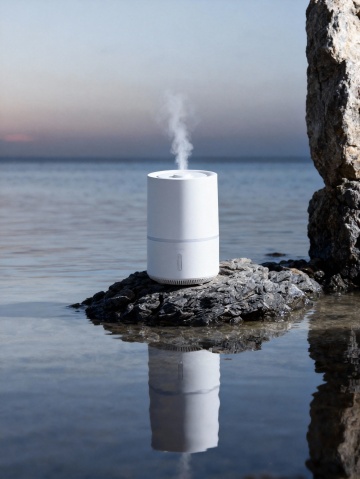 清新极简户外风调性,整体配色以米白、浅蓝与淡紫为主,色调明亮舒缓;采用平视视角,中心构图,主体垂直竖立在画面中部的浅色岩石(表面较为圆润岩石)堆上,占据约 25% 视觉空间;周围点缀淡紫色草本植物,背景为澄澈蓝天与一点点蓬松云朵,主体与轻简自然场景融合;运用自然光效渲染突出通透质感,浅景深处理,主体清晰锐利,背景云朵柔和虚化提升氛围。