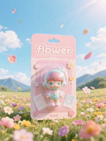 清新3D卡通拟人风,波普艺术花朵点缀,营造梦幻花海节日氛围。