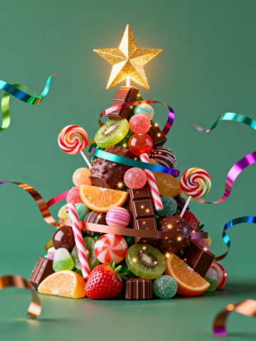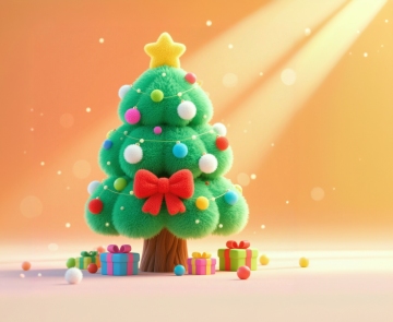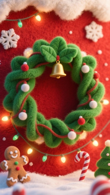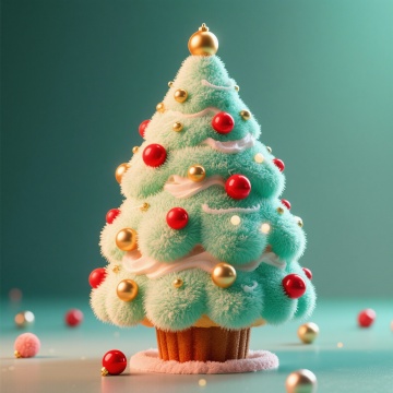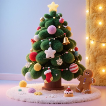主体:立体毛绒圣诞蛋糕(三层结构,底层红绒、中层白绒、顶层绿绒,表面缀毛绒糖霜、毛绒彩球、毛绒星星);点缀:毛绒餐垫(奶白短绒,绣圣诞花纹)铺在桌面,摆 1 个迷你毛绒圣诞帽、1 串小毛绒彩灯;甜品:1 个迷你毛绒苹果派(红绒表层,“苹果块” 是红绒拼接,铺白绒奶油边),放蛋糕旁;场景:星光灯 + 暖黄主光结合,照亮蛋糕绒面蓬松感,背景是局部毛绒墙面(仅圣诞装饰区域裹绒),氛围梦幻聚焦主体