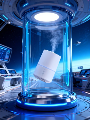清新感与温馨感交织,简约主义设计搭配柔和色调,水彩风背景衬托出轻拟物风的加湿器,营造出文艺优雅的浪漫氛围。