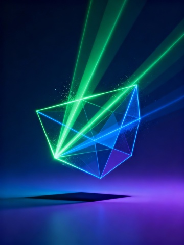 一张以折纸激光褶材质为核心视觉元素的海报设计,整体采用极具未来感的设计风格。画面主体是由折纸激光褶材质构成的几何形态或抽象结构,材质表面呈现出细腻的折痕与锐利的棱角,光线照射下,褶皱纹理间反射出强烈而炫目的激光效果,包括明亮的高光、七彩的光晕以及清晰的光束折射轨迹,色彩以金属质感的银白、科技蓝、霓虹粉或紫色为主调,光影对比强烈,光源从特定角度投射,在折纸上形成精准的阴影和高光区域,突出材质的立体感与激光的动态视觉冲击力。构图上遵循视觉层级原则,将折纸激光褶材质的主体元素置于画面中心或黄金分割点位置,确保其成为绝对视觉焦点,背景简洁,可能为深色渐变或纯色,以最大化衬托主体材质的激光光泽和折痕细节,整体设计传达出科技感、未来感与精密工艺的氛围,信息传达直接高效,视觉效果震撼,符合追求前卫与创新的目标受众审美。