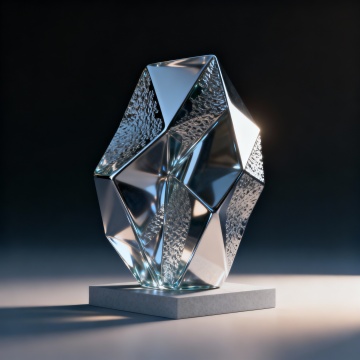 一颗造型经过改变的璀璨钻石,呈现出独特的几何切割形态,保持极高的写实质感,纯净透明的晶体内部折射出丰富的光芒,包含明亮的白色闪光和微妙的彩色火彩,高光锐利,阴影过渡自然细腻,置于纯白色的纯色背景上,整体画面聚焦于钻石本身的结构美感与光影效果,无任何文字、LOGO、二维码及其他装饰元素。