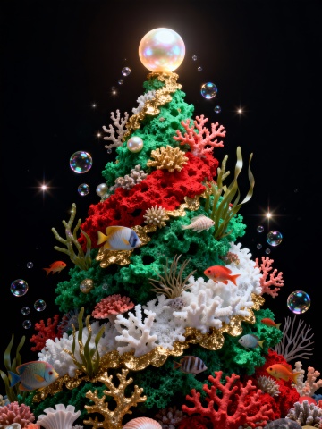 梦幻光影交织的3D圣诞树,鎏金粒子环绕,科技感与奢华感并存,虚拟现实中的唯美元素点亮节日氛围。