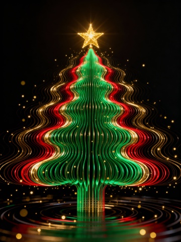 鎏金粒子缠绕成梦幻圣诞树,3D光影流动,闪耀星芒,尽显奢华浪漫与温馨唯美感。