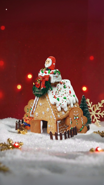 3D风粘土质感的圣诞姜饼屋,融合微缩艺术与重拟物设计,搭配毛发生长风雪景,营造喜庆梦幻的甜蜜卡通世界。