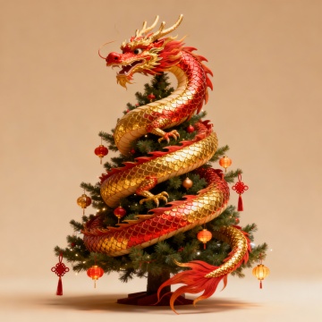 中式感龙形,软3D风设计,毛发生长风细节,节日氛围浓厚。
