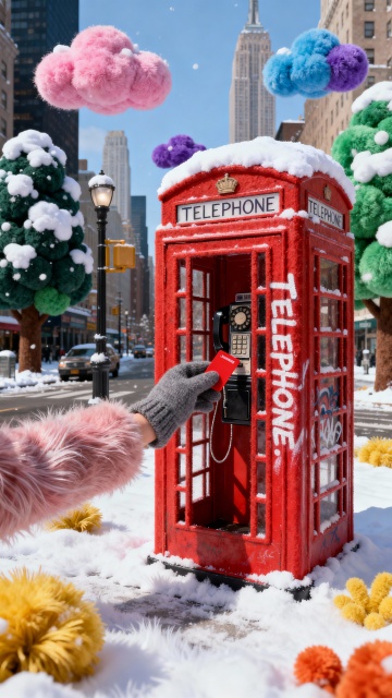 想象一个平日繁忙的都市街道,忽然被魔法击中,所有的汽车、红绿灯、甚至斑马线都变成了长绒毛材质。硬朗的混凝土变成了粉嫩的皮草