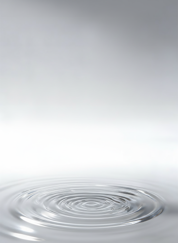 纯净水面上由中心点向外扩散的多层同心圆涟漪,水滴刚落入水面形成的动态瞬间,柔和的顶部光源照射下,涟漪边缘呈现出明亮的银白色高光,水波纹理细腻光滑,背景为渐变的浅灰色调,整体营造出宁静、简约且富有科技感的氛围,水面质感清澈透明,光影过渡自然柔和,极简主义风格,高清晰度,细腻的水波纹细节,光滑的水面反射效果。