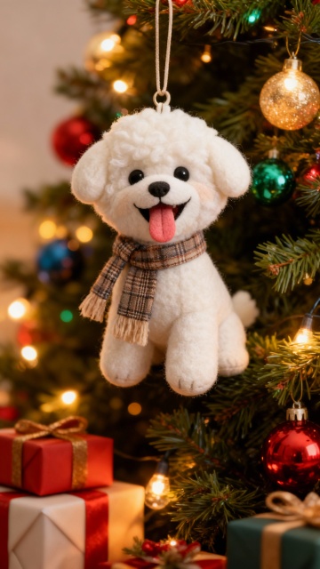 软3D风毛绒小狗挂饰,搭配格纹围巾,萌趣十足,营造温馨喜庆的圣诞氛围,卡通感与面料质感交融,尽显可爱。