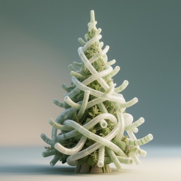 梦幻雪境中的3D浮雕圣诞树,重拟物风格呈现体积感,彩灯光影交织,营造温馨节日氛围。