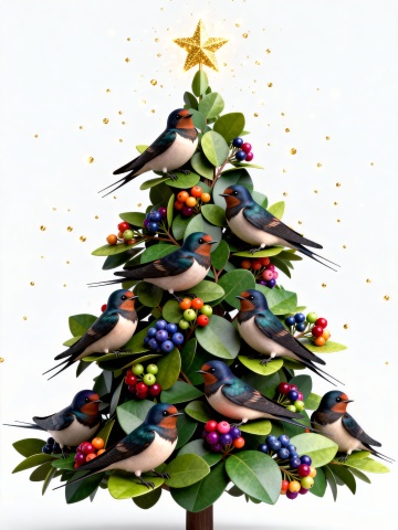 小燕子 各种小浆果 树叶