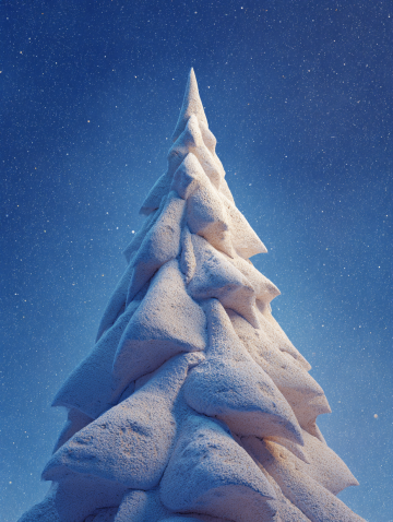 梦幻感与唯美感交织的3D浮雕风雪松,重拟物细节展现虚拟自然之美,静谧星空下宛如童话圣诞树。