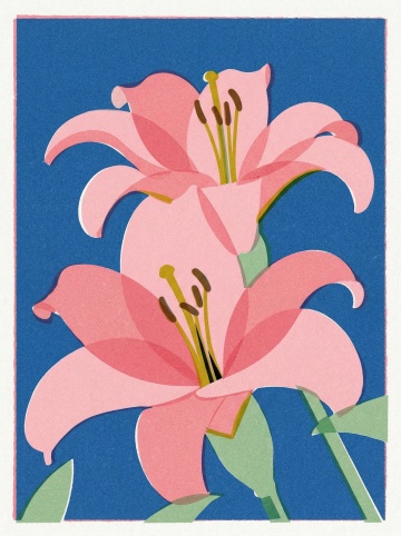 清新插画风百合花,轻拟物设计,简约优雅,适合春季主题。