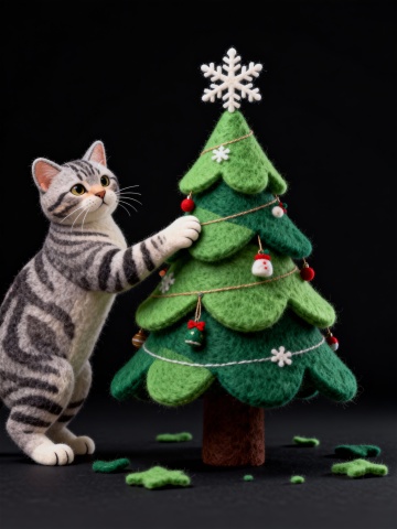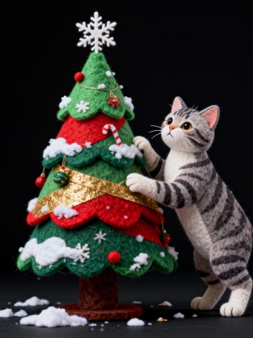 自家猫主子的猫抓柱为灵感,创作毛毡材质的圣诞造型猫抓柱