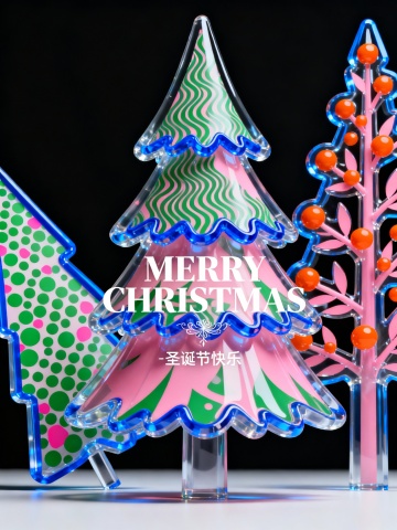玻璃风圣诞树搭配鎏金霓虹鹿,3D光影交织,梦幻奢华中透出温馨优雅,节日氛围唯美动人。