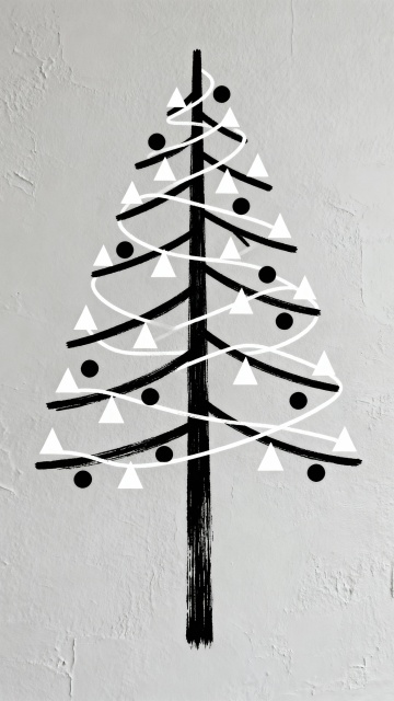 极简黑白几何圣诞树,树干是黑色实木圆柱,光滑无纹理,树枝是白色亚克力板,切割成三角形、长方形,拼接成树枝形状,装饰是黑色金属星星、白色玻璃球,无图案,底部是黑色大理石底座,光滑反光,背景是纯白墙面,冷色调,低饱和度,光影对比强烈,简洁高级氛围