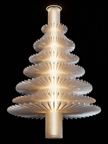 本作品以圣诞树为母题,展开一次立体构成的结构探索。通过单一几何构件的重复、旋转与尺度递减,在严格的中轴对称规则下,自然生成稳定而清晰的整体形态。圣诞不再依赖装饰与情绪,而由比例、秩序与生成逻辑本身成立。这不是一棵被装扮的树,而是一种结构在规则中完成的结果——理性、克制,却明确存在。