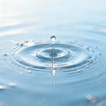 超写实摄影风格,纯净透明的液态水以优雅的环形涟漪形态从平静水面扩散开来,中心区域形成柔和隆起的水弧,边缘点缀细小飞溅的水珠与气泡,整体呈现出轻盈灵动的动态美感。背景为渐变的浅蓝色调,光线从上方柔和洒落,在水面形成细腻的高光反射与通透的阴影层次,水的质感清澈见底,波纹线条流畅自然,营造出宁静而富有生命力的氛围。