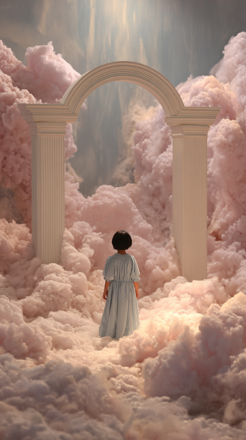 梦幻插画风,超现实主义设计,少年凝视卷轴堆,星月环绕,营造神秘氛围。