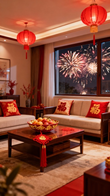 一堆毛茸茸的年货,有红色的毛绒玩具、毛茸茸的围巾帽子、毛绒材质的新年装饰品,背景是温馨的室内场景,充满节日氛围,光线柔和温暖