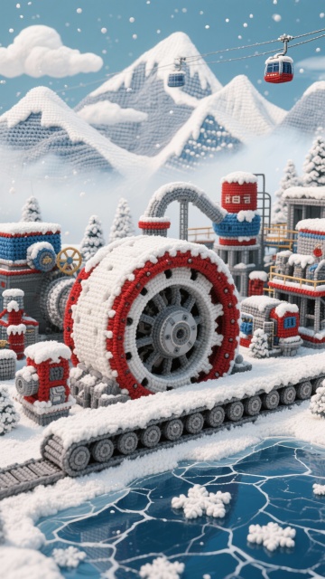 梦幻雪景中的微缩刺绣风火车穿行于毛线织就的山川桥梁,搭配温暖色彩与细腻纹理,营造出可爱温馨的节日氛围。好用