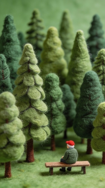 毛线编织的童话森林,3D微缩艺术风,火车载着发光植物穿行于绒毛树间,梦幻温馨,趣味十足。