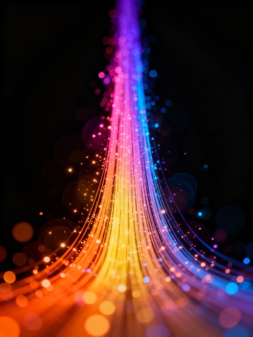 未来感与科技感交织的3D粒子流,极简线条勾勒梦幻光影,虚拟现实中的抽象曲线,酷炫而深邃。
