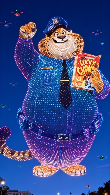 梦幻感与卡通感交织,3D角色风结合虚拟现实技术,营造超现实主义场景。毛发生长风细节精致,充气风气球点缀喜庆氛围,呈现童话乐园的欢乐瞬间。