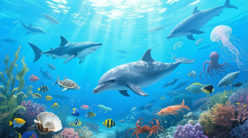 一幅梦幻唯美的海底世界插画,整体采用深蓝色调为主,搭配青色和浅蓝色的渐变,营造出神秘而宁静的氛围。画面中,阳光不再从水面上方直射,而是转变为从画面右侧斜下方照射的柔和光源,光线穿透海水形成一束束倾斜的光柱,在水中折射出斑斓的光晕效果。海底的细沙呈现出细腻的质感,上面覆盖着一些绿色的海草和形态各异的珊瑚礁。一群银色的小鱼正朝着光源的方向游动,它们的身体在光线下闪烁着微光。画面中还点缀着许多大小不一的气泡,从海底缓缓上升。整体构图采用纵深视角,前景的珊瑚和海草清晰可见,中景的鱼群和背景的海水形成了明显的层次感,光线的变化让整个海底世界呈现出一种全新的光影魅力,既保留了原有的梦幻感,又增添了一丝温暖和神秘感。
