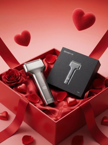 科技感与实景感交融,3D风金属质感剃须刀立于浪花岩石之上,光影流动间展现未来感与清爽清透的商务美学。