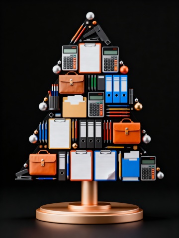 未来感与科技感交织的3D风圣诞树,霓虹灯管勾勒树形,电子元件点缀其间,金属质感与光影交错,营造梦幻酷炫的虚拟现实节日氛围。