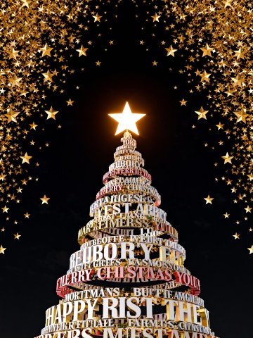 本作品以设计工具与设计元素为灵感来源,将尺子、网格系统、参考线、取色器与图层符号等抽象化为视觉语言,重组为一棵理性而克制的圣诞树。这些看似冷静的工具,构成了创意背后的结构与逻辑。它们并不直接呈现节日情绪,却在无数次修改与推敲中,为作品点亮最终的星光。通过将设计过程转化为节日形象,致敬每一位在规则与灵感之间寻找平衡的创作者。这是一棵属于设计平台和设计师的圣诞树。