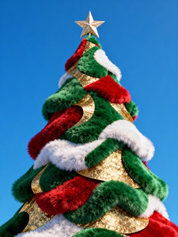 3D重拟物风圣诞树,毛发生长质感与红绿白绒面交织,金色螺旋点缀,喜庆氛围浓厚,节日气息扑面而来。