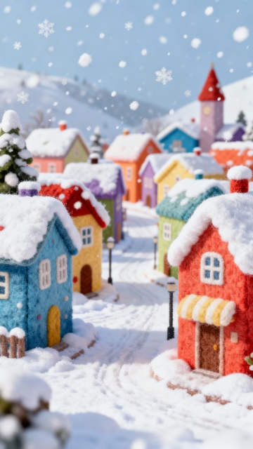 以 “绒化冬日乡野” 为核心,用毛绒质感重构传统村落:将青瓦民居、街边小摊裹上蓬松雪绒,让山石、植被化作蓝紫渐变色的柔绒团簇,背景叠入现代楼宇的朦胧轮廓,既保留乡野街巷的烟火气(彩罐、摊位),又以柔软纤维消解冬日的冷寂,用 “现实场景 + 毛绒材质” 的混搭,织就一场 “暖糯旧时光撞见轻科幻” 的温柔梦境,每一处绒感细节都在打破现实与童话的边界