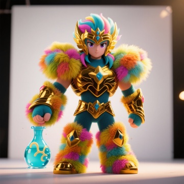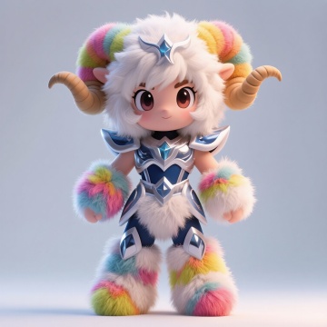 3D卡通风格,拟人化毛发生长设计,色彩斑斓,可爱生动。