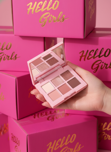 粉色系双色设计风眼影盘,融合鎏金文字与轻拟物造型,甜蜜可爱中透出时尚潮流感,印刷风包装呼应节日氛围。